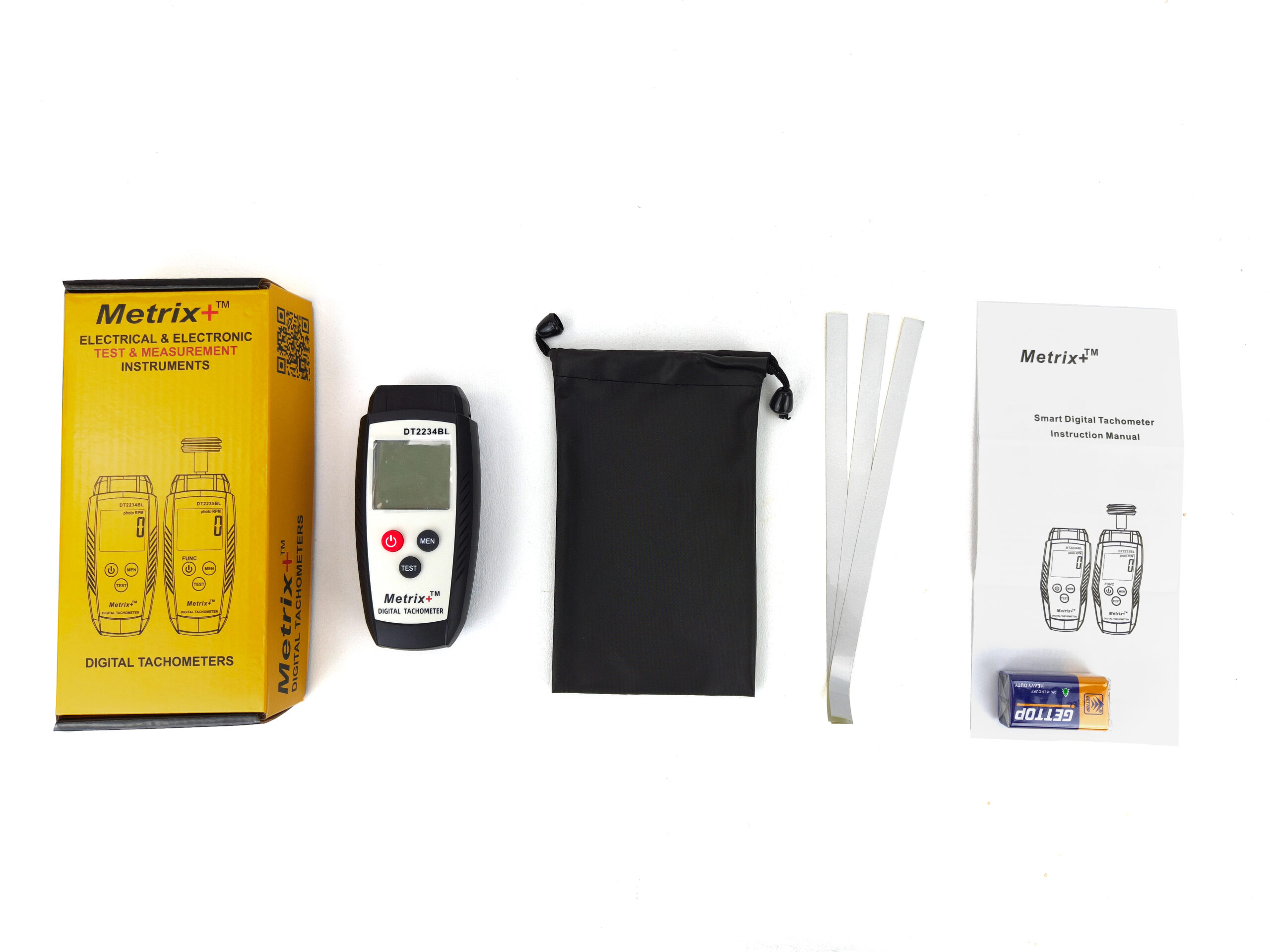 | DT 2234BL has a laser, which reflects from a reflecting tape (provided with the instrument and which is to be stuck on the rotating object), and the frequency of reflections help to measure the RPM of the rotating object. |