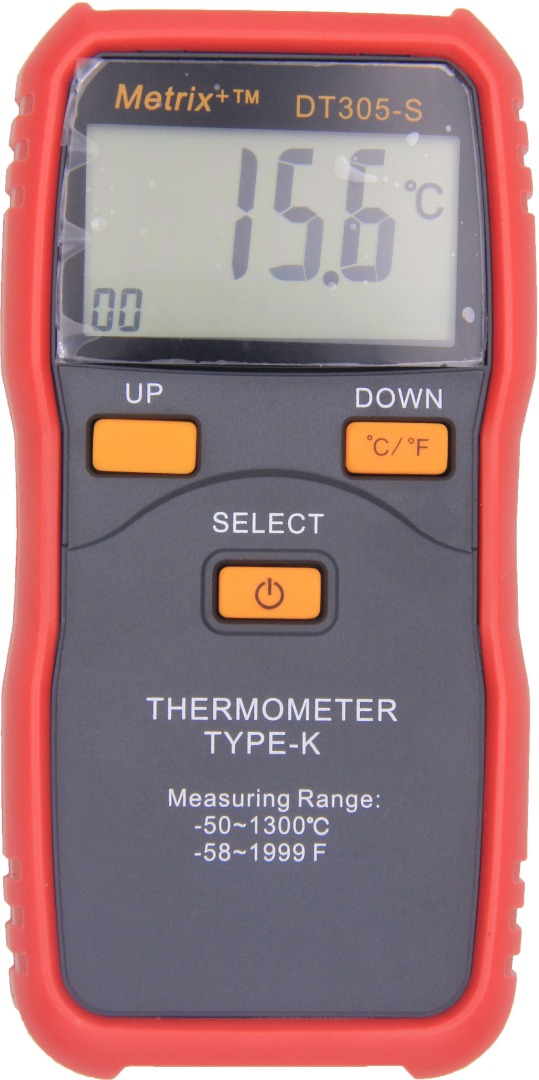 This instrument uses an electrode to pass a voltage, and then measure the current, which depends on the resistance value changing with the temperature of the sample. The current value is shown as temperature reading. This instrument uses K-type thermocouple.