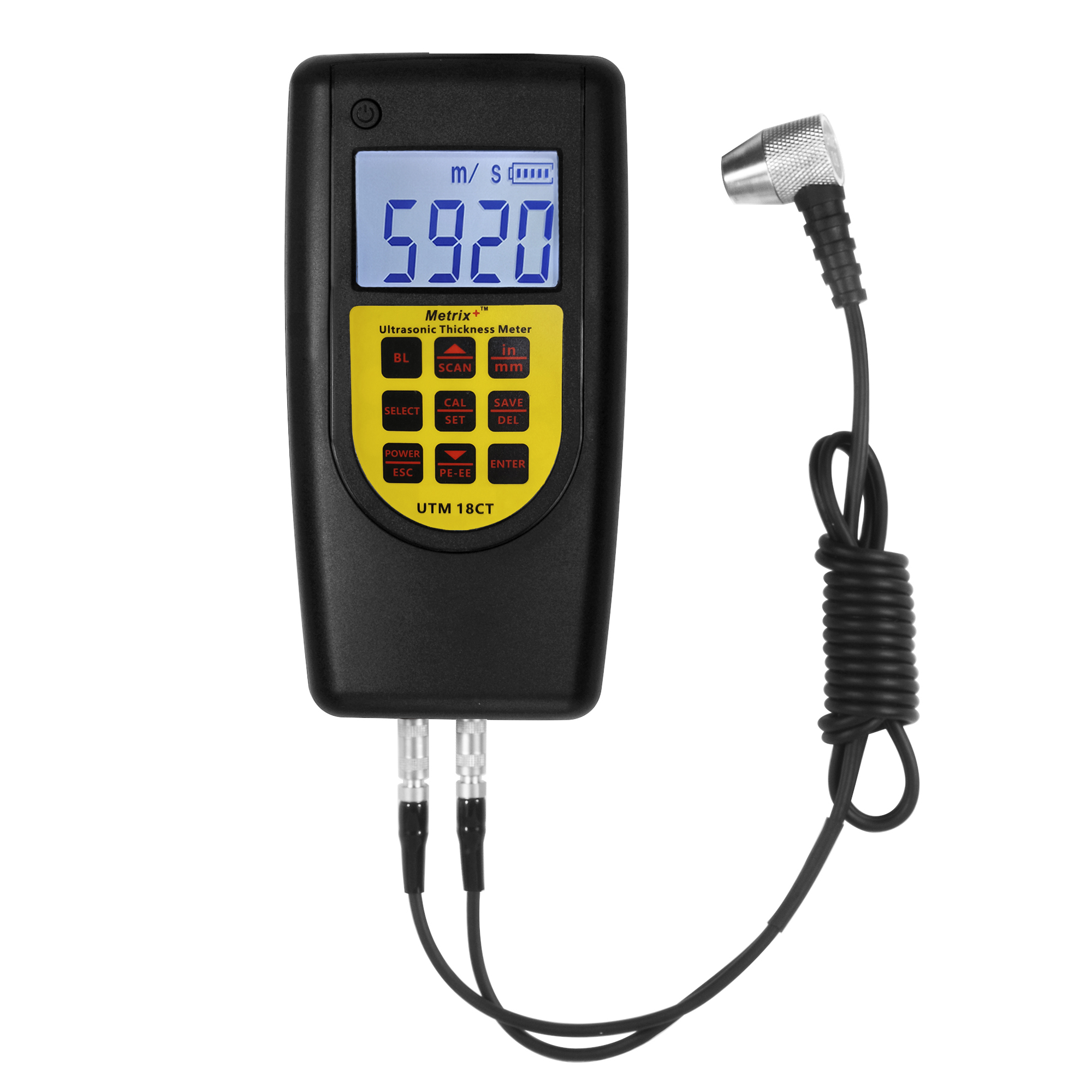 Ultrasonic thickness gauge determines the sample thickness by measuring the amount of time it takes for a sound pulse, generated by an ultrasonic transducer, to travel through a test piece and reflect from the inside surface or a far wall. In Pulse-Echo mode it measures the time taken for the pulse to travel from backwall, consequently measuring the total thickness of the sample. In Echo-Echo mode, it measures the time taken between the first echo and the next, thereby eliminating paint or coating thickness and measuring total thickness minus the coating thickness, hence, called through coating thickness.