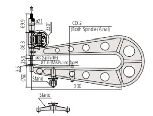 | Code No. | Range (mm) | Resolution (mm) | Maximum permissible error JMPE (μm) | Flatness (μm) | Parallelism (μm) | Throat depth (mm) | Measuring Surface |